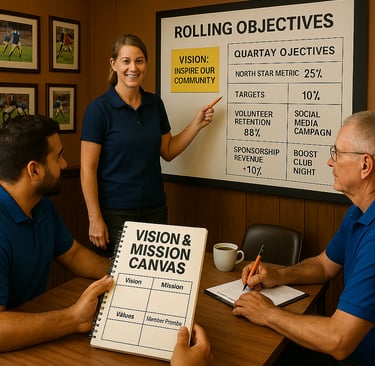 Concept of Operations (CONOPS): Shift from an annual “set-and-forget” season plan to a dynamic, mission-driven campaign. Anchor your club on a compelling Vision & Mission Canvas and replace rigid forecasts with rolling quarterly objectives. Embed fast-cycle reviews that let you pivot at the first sign of changing conditions. For more on mission-driven operations, see Offensive Action.